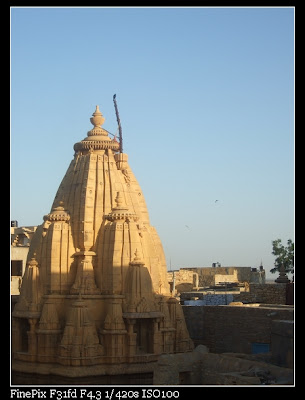 沙漠氣候溫差真大,才剛從10度以下的冷藏室出來馬上又變35度的烤箱,太陽之大,在屋頂上遇見一個英國婦人,他的男友去駱駝旅行,她自己留在金色城市裡,哪也不想去,她從南印來北印玩,聽說被男友騙來,因為男友要去騎駱駝吧!!也好像是一個月以上的大旅行,她說她來北印的第一天就好想她溫暖的床阿,印度只有一個字 就是 hot 拉 !!呵呵!!我們呆了2周了還有dirty拉, 她建議我們去做印度按摩.....